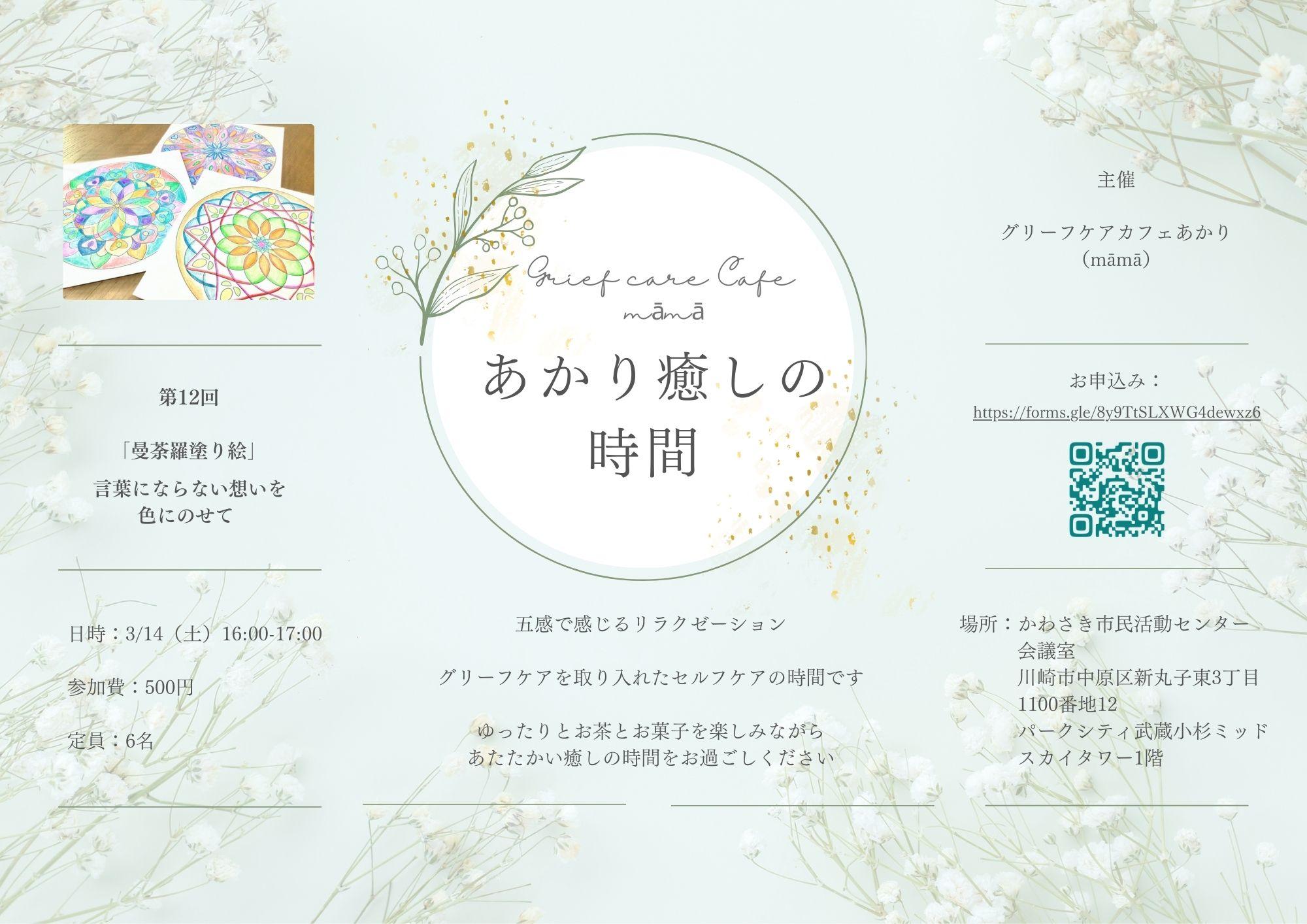 | 主催 | グリーフケアカフェあかり(māmā) |